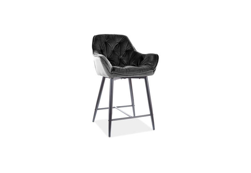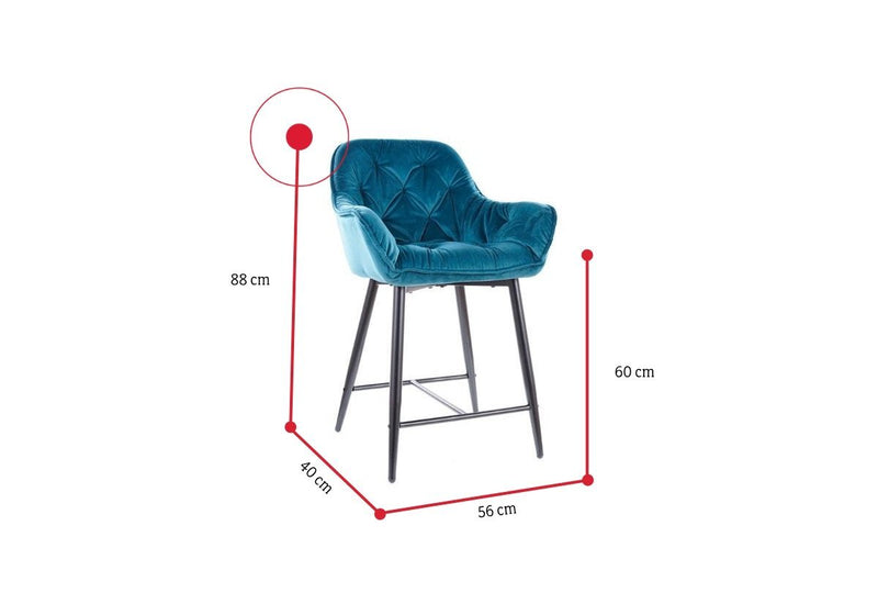 Barová stolička BERRY H-2 Velvet. Pevná kovová konštrukcia spolu s výstuhami zaisťuje potrebnú stabilitu. Čalúnený sedák a opierka nôh sa postarajú o maximálne pohodlie pri sedení. K dispozícií je vo viacerých farbách. Moderná barová stolička sa hodí do jedálne i kaviarne.