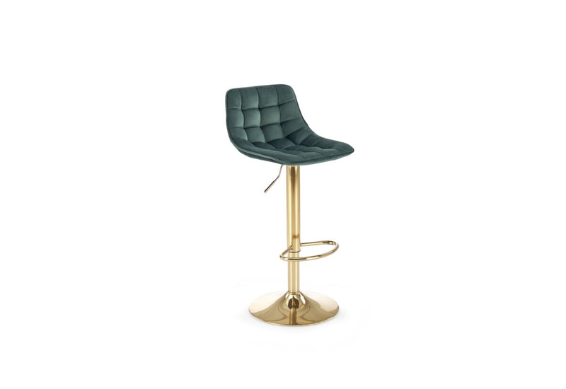 Barová stolička RUDLA. Zaujme jednoduchým vzhľadom moderného štýlu a tvarovanou opierkou s výrazným prešívaním. Základ tvorí silná kovová noha a okrúhly podstavec v zlatej farbe. Je tak zaistená pevnosť a stabilita. Maximálny komfort pri sedení ponúka praktická opierka nôh a príjemná poťahová látka. Výšku sedacej plochy je možné prispôsobiť podľa potreby. Možnosť výberu z viacerých čalúnení.