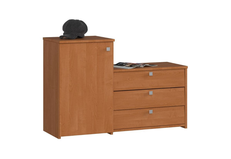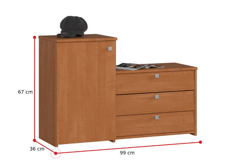 Botník BOKO. Zaujme moderným dizajnom s rovnými líniami. Je vyrobený z kvalitného materiálu, ktorý je opatrený ABS hranami, ktoré chránia pred mechanickým poškodením a vlhkosťou. Disponuje jednou skrinkou s dvierkami, ktorá je rozdelená policou a jednou skrinkou s vyklápacími dvierkami s dostatočným úložným priestorom. Súčasťou sú úchytky na jednoduchšie otváranie.