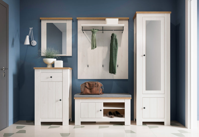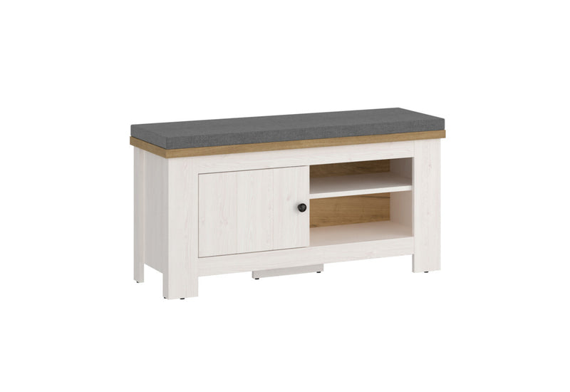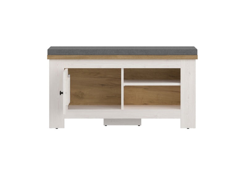 Botník CELESTAN. Zaujme moderným dizajnom a kvalitným spracovaním. Je vyrobený z kvalitného materiálu . Poskytuje dostatok úložného priestoru v podobe skrinky s dvierkami, a dvoch otvorených políc. Súčasťou sú úchytky na jednoduchšie otváranie. Počas obúvania sa môžete pohodlne usadiť na čalúnený sedák v šedej farbe. Kombinovať môžete s ďalšími produktmi z radu CELESTAN.