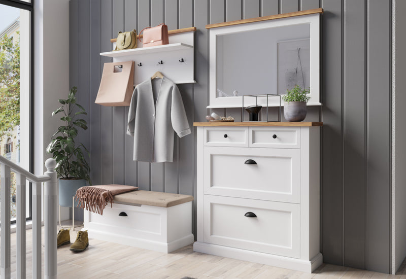 Botník GALON. Zaujme dizajnom s jednoduchými líniami. Je vyrobený z vysoko kvalitného materiálu, ktorý je vybavený ABS hranami pre väčšiu ochranu pred mechanickým poškodením a vlhkosťou. Disponuje dvoma zásuvkami a dvoma dvierkami s dostatočným úložným priestorom. Súčasťou sú úchytky pre ľahšie otváranie. Vyberať môžete z viacerých dekorov.