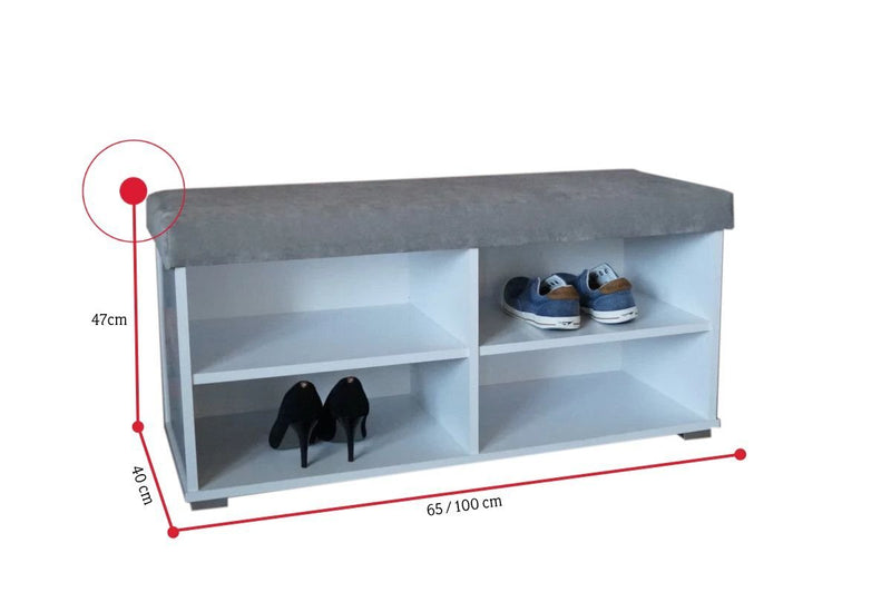 Botník MEGIS. Vyrobený je z kvalitného materiálu, ktorý je vybavený ABS hranami. Tie chránia materiál pred mechanickým poškodením a vlhkosťou. Sedacia plocha potiahnutá látkou. Pohodlie počas sedenia je zabezpečené výplňou z PUR peny o sile 5 cm. Botník disponuje úložným priestorom rozdeleným na police. Súčasťou sú nízke nožičky v striebornej farbe. Vyberať môžete z viacerých farebných dekorov čalúnenia.