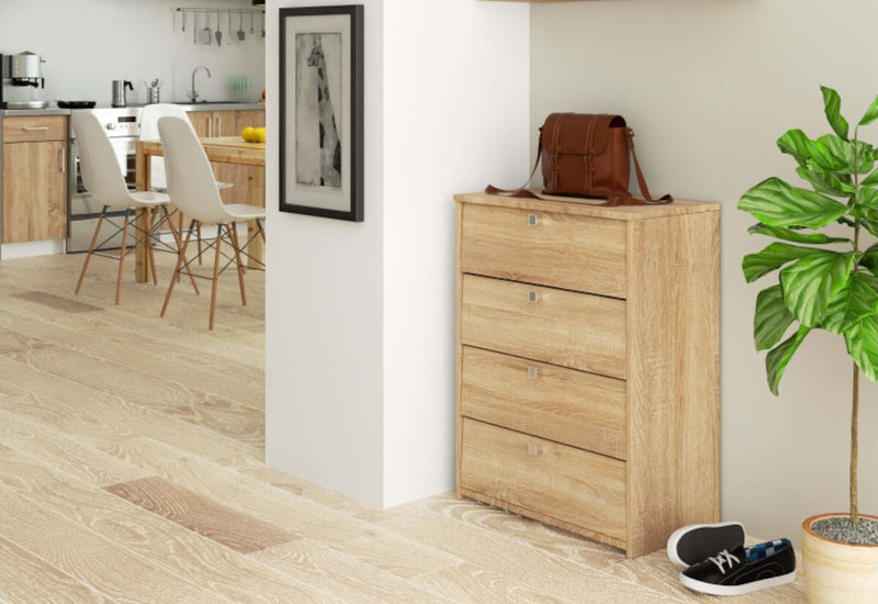 Botník ROKO 4 je vyrobený z kvalitného lamina s ABS hranami. Disponuje výklopnými priestrannými zásuvkami. Je v modernom dizajne, takže sa z neho rýchlo stane dominanta vašej predsiene. Nemusíte mať strach, že by vám neladil k zvyšku interiéru, pretože máte na výber z viacerých farebných variantov.