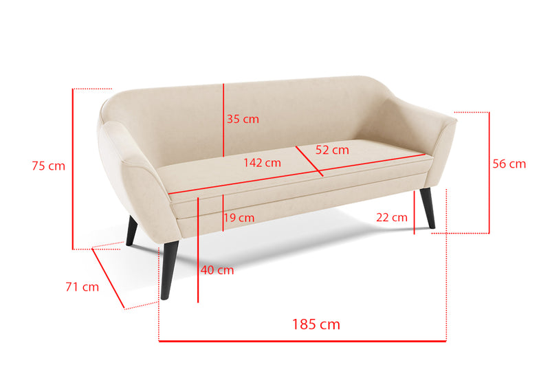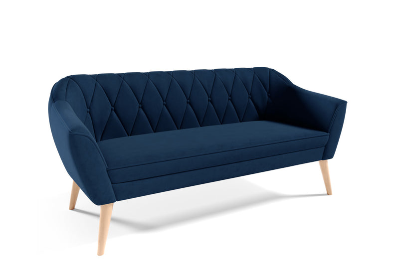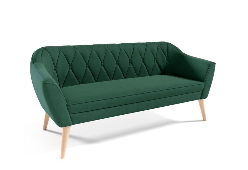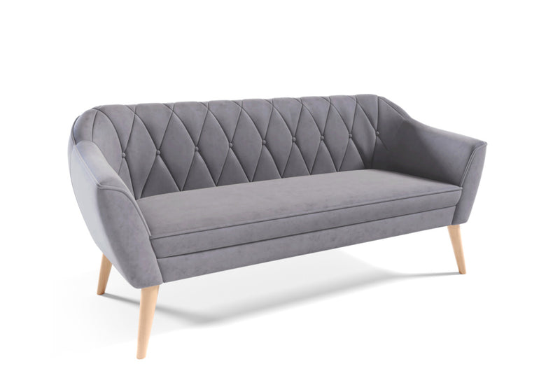 Čalúnená pohovka CATERINA. Jedinečná pohovka v škandinávskom štýle. Rám je tvorený z kombinácie DTD a HDF dosky pre stabilitu a pevnosť. Potiahnutá je kvalitnou látkou, ktorá je príjemná na dotyk. Vyniká svojim prešitím na operadle s dekoratívnymi gombíkmi. Komfort počas sedenia zaistí výplň s pružinami Faliste. Poskytuje pohodlie pri relaxácii a odpočinku. Stabilitu a eleganciu dodávajú vysoké nohy v prírodnom alebo bielo-zlatom dekore podľa zvoleného farebného čalúnenia. Pre dokonalé zladenie máte možnosť voľby v rovnakom prevedení kreslo ARTURO z našej ponuky.