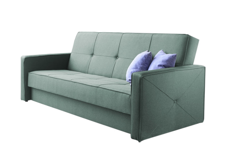 Čalúnená pohovka DEBORA. Zaujme moderným a jednoduchým vzhľadom. Rám je tvorený z kombinácie DTD a HDF dosky pre stabilitu a pevnosť. Výplň je tvorená penou v kombinácii s bonellovými pružinami. Vďaka rozkladaciemu mechanizmu ľahko premeníte pohovku na lôžko. Súčasťou pohovky je úložný priestor a dva vankúše. Konštrukciu podopierajú nižšie nožičky pre väčšiu stabilitu. Vyniká elegantným čalúnením s jemným prešitím, ktoré je zdobené gombíkami. Možnosť výberu z viacerých farieb čalúnenia.