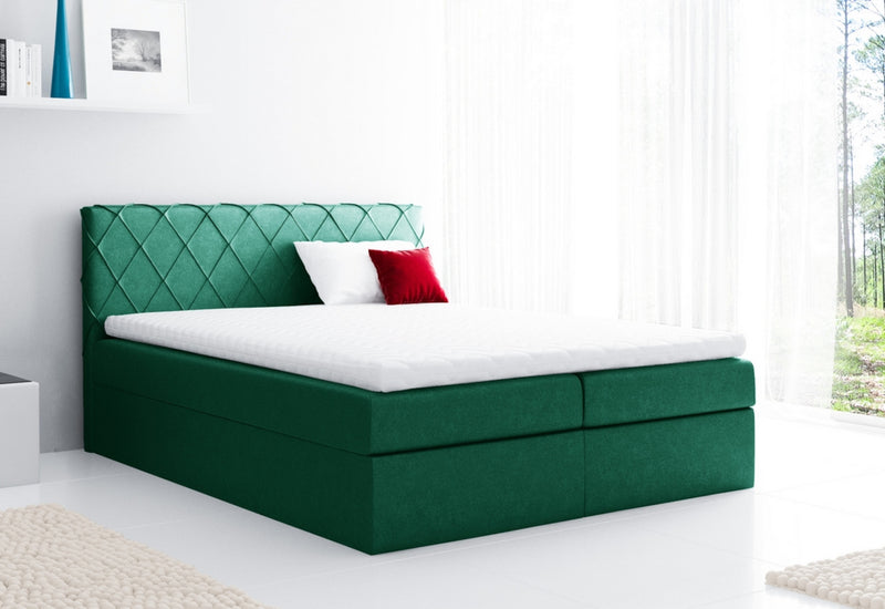 Čalúnená posteľ AMANDA. Ponúka odpočinok na vyvýšenej spacej ploche, ktorá zaistí aj pohodlné vstávanie. Polstrované čelo je príjemnou opierkou pri relaxácii počas dňa. Posteľ ponúka aj dostatok úložného priestoru s jednoduchou manipuláciou. Výplň matraca tvoria kvalitné pružiny bonell a pena T30 v strednej tvrdosti H3. Lôžko je navyše doplnené topperom, ktorý predĺži životnosť matraca a spríjemní vám spánok. Vybrať si môžete z viacerých farieb a z rozmerov spacej plochy.
