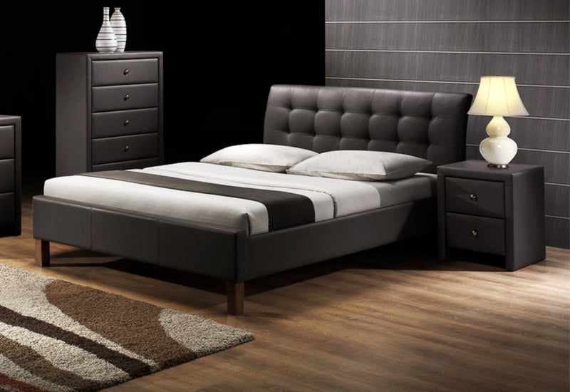 Čalúnená posteľ BAGANZA. Upúta vás svojim elegantným vzhľadom. Potiahnutá je príjemnou ekokožou. Vysoké čelo postele je zdobené nápaditým prešitím. Súčasťou postele je lamelový rošt. Vyššie nožičky dodávajú posteli väčšiu stabilibu a vzdušnosť. Pre komfort postele si môžete zaobstarať vhodný matrac, napr. DE LUX alebo MORAVIA z našej ponuky. Čalúnená posteľ BAGANZA sa stane dominantou každej spálne.