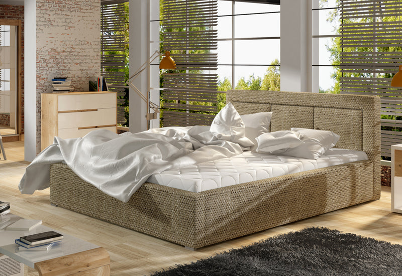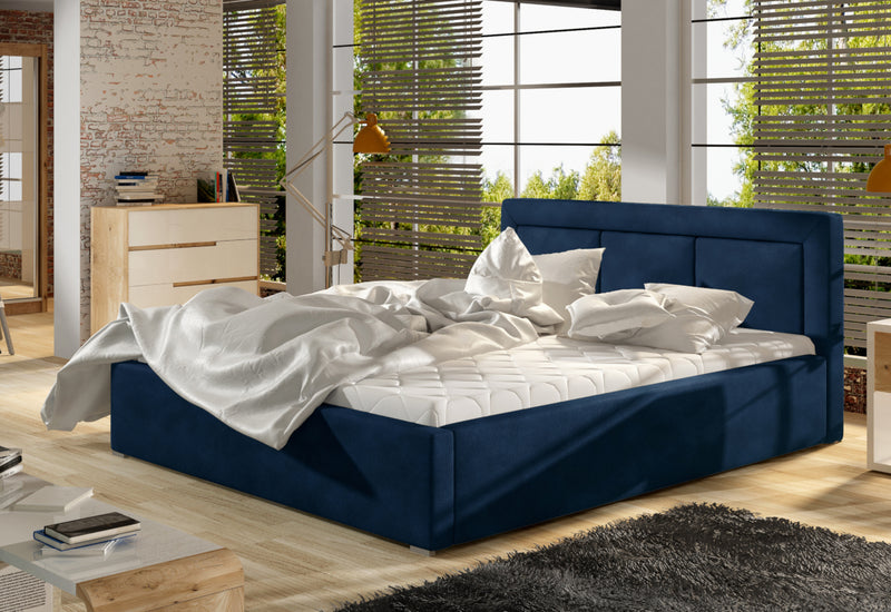 Čalúnená posteľ BELUNA. Zaujme svojim moderným dizajnom, vďaka ktorému nájde miesto v každom inetriéri. Je vyrobená z pevných materiálov a čalúnená kvalitnou látkou. Dominantou je vysoké polstrované prešívané čelo. Kvalitná konštrukcia zaistí stabilitu a pevnosť postele. Súčasťou postele je drevený rošt. Vybrať môžete z viacerých farieb a veľkosti spacej plochy.