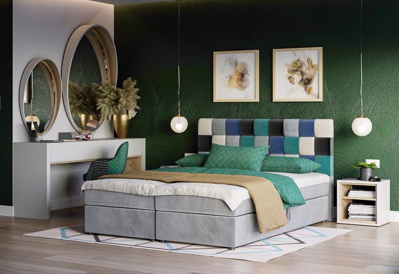 Čalúnená posteľ boxspring APPLE + úložný priestor + matrac + rošt