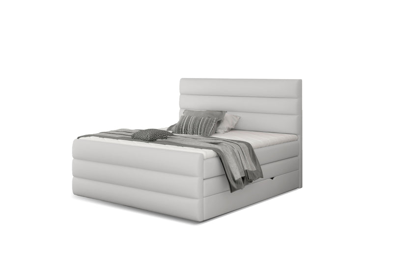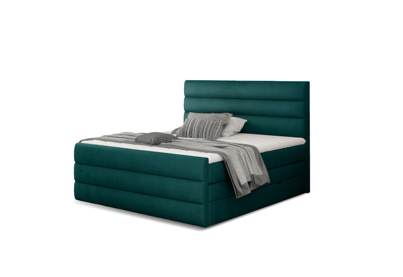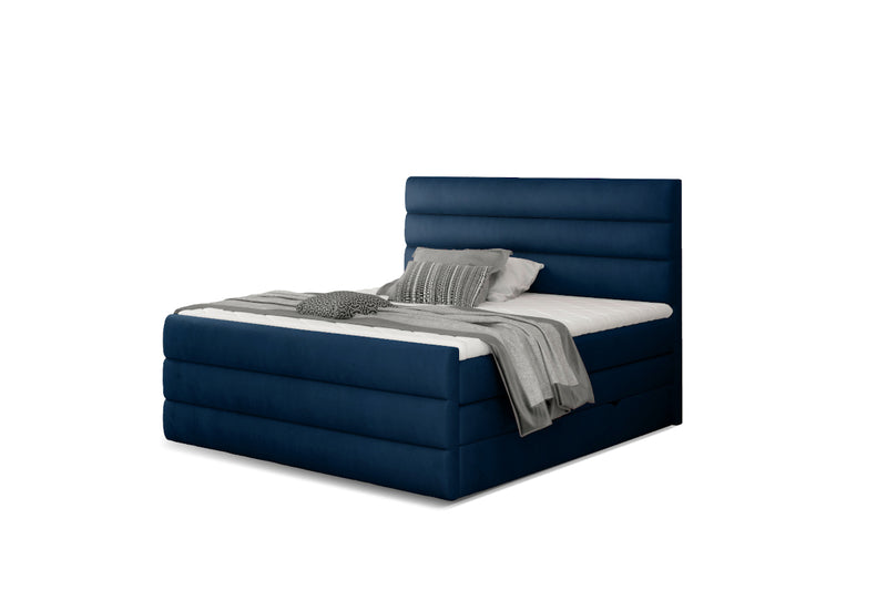 Čalúnená posteľ boxspring CARAMELLA. Dominantným prvkom je vysoké a mohutné čelo. Drevená konštrukcia postele zaistí stabilitu a pevnosť. Bonellové matrace vyplnené PUR penou, ktoré spoločne s Topperom zaistia komfort počas odpočinku. Poťah topperu je prateľný na 40 ° C a je vyrobený z hypoalergénneho materiálu. Úložné priestory sú ľahko prístupné vďaka bočnému otváraniu. Výber poťahových látok.