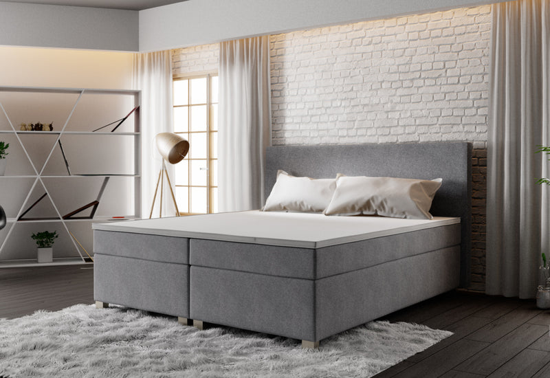 Čalúnená posteľ boxspring ISLAND. Disponuje kvalitným roštom a pružinovým matracom. Posteľ stojí na ozdobných nožičkách. Jej povrch je potiahnutý s príjemnou látkou Cosmic. Pri objednávke máte možnosť zakúpenia spolu s penovým topperom. V ponuke je v troch rozmeroch spacej plochy.