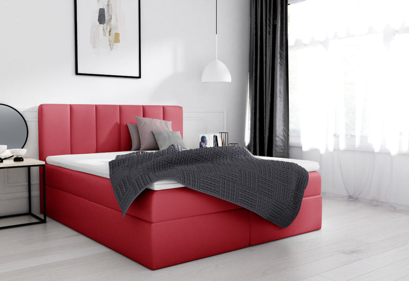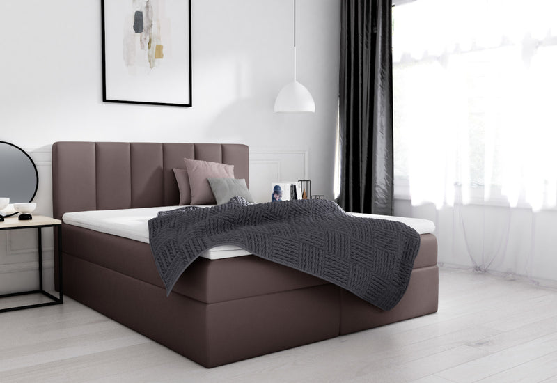 Čalúnená posteľ boxspring LESORA. Polstrované čelo ekokožou je príjemnou oporou pri relaxácii aj počas dňa. Súčasťou je rošt a zabudovaný matrac, ktorý obsahuje vysoko pružnú penu T30 a taštičkové pružiny pre maximálny komfort. Doplnok je 3 centimetrov vysoký Topper s elastickou penou. Súčasťou sú úložné priestory pre posteľnú bielizeň. Vybrať môžete z viacerých farieb a rozmerov spacej plochy.