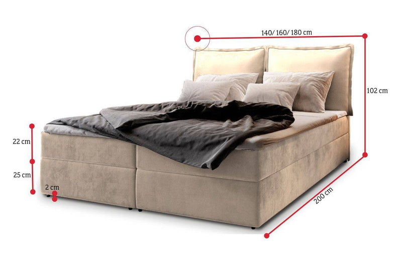 Čalúnená posteľ boxspring LINTO. Zaujme svojimi jednoduchými líniami. Posteľ je vyrobená z kvalitných materiálov. Komfort vášho spánku zaistí matrac, ktorého výplň tvorí kombinácia bonelových pružín a PUR peny T-25. Výhodou postele je úložný priestor pod oboma spacími plochami s ľahkým prístupom z boku postele. Vankúše na opierke hlavy sú súčasťou postele, zatiaľ čo malé vankúše slúžia na dizajnové účely a nepatria k výrobku. Vybrať môžete z viacerých čalúnení. Možnosť voľby spacej plochy.