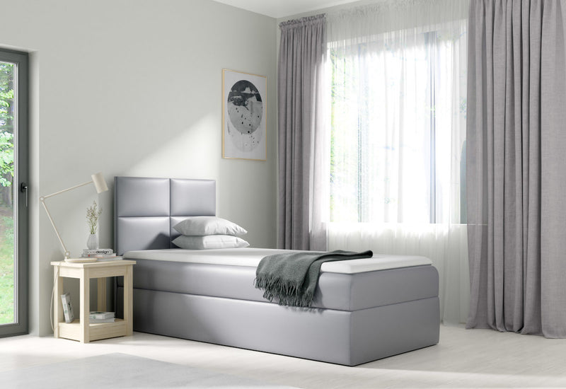 Čalúnená posteľ boxspring MANA 3. Jednoduché a rovné elegantné línie v modernom vzhľade. Rám postele vyrobený z celodrevenej konštrukcie pre stabilitu a pevnosť. Potiahnutá je kvalitnou ekokožou. Vysoké polstrované čelo postele slúži počas dňa aj na relaxáciu. Súčasťou postele je rošt a zabudovaný Bonellový matrac vyplnený penou T30. Vysoko flexibilný penový Topper zaistí pohodlie a komfort pri odpočinku. Výhodou je úložný priestor s automatickým mechanizmom. Vybrať môžete z viacerých rozmerov spacej plochy a orientácie strany postele. /p>