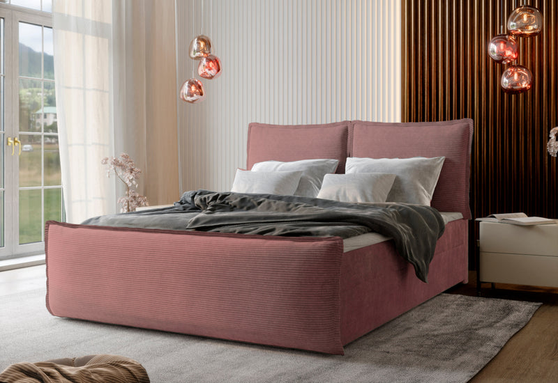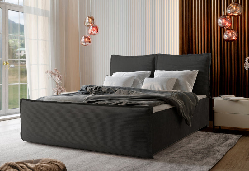 Čalúnená posteľ boxspring MANTA. Základ tvorí dobre spracovaný rám. Je tak zaistená pevnosť a stabilita postele. Dominantným prvkom postele je vysoké čelo. Súčasťou je zabudovaný bonellový matrac vyplnený penou T21. Priestranné úložné boxy s bočným otváraním nájdete pod matracmi. Možnosť voľby čalúnenie a rozmeru.