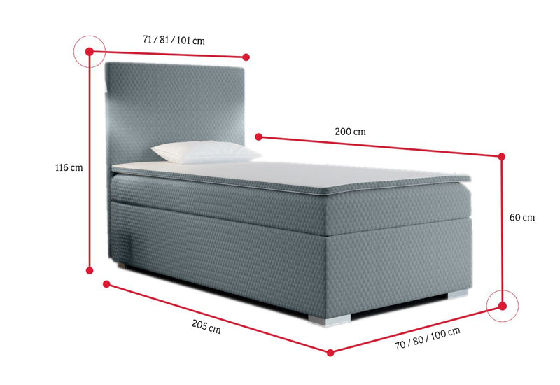 Čalúnená posteľ boxspring RENATA. Zaujme svojim moderným dizajnom s rovnými líniami. Dominantou je vysoké čelo. Komfort vášho spánku zaistí bonellový matrac. Výhodou postele je úložný priestor pod spacou plochou. Súčasťou postele je rošt. Nižšie nožičky zaisťujú stablitu a vzdušnosť. Vybrať si môžete z viacerých farebných kombinácií a spacej plochy. Orientácia postele je určená tým, z ktorej strany sa otvára úložný priestor.