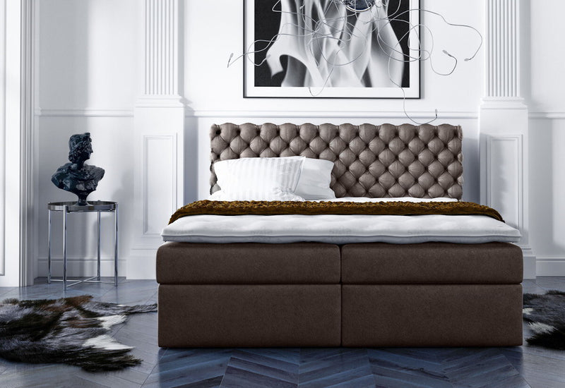 Boxspringová posteľ VIOLIN + topper vás ohromí svojím jednoduchým dizajnom s nadčasovo prešívaným čelom. Pevný korpus je potiahnutý na dotyk príjemnou látkou. Vysoké a prešívané čelo vyzerá elegantne. Navyše je aj praktické. Komfortné spanie zaručí matrac vyplnený pružinami v kombinácii s penou T30. Súčasťou postele je úložný priestor s klasickým otváraním z boku. Penový topper je súčasťou postele.