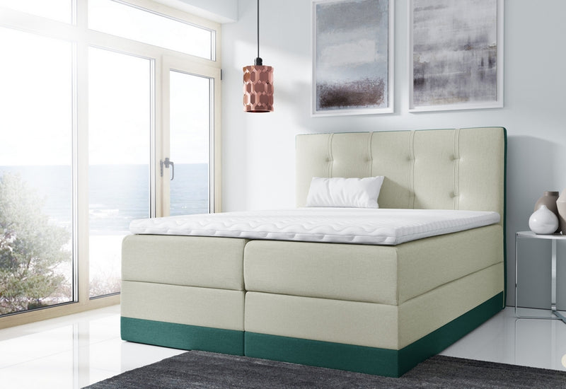 Čalúnená posteľ CAESAR, ktorá zaujme svojou mohutnou konštrukciou a jednoduchým dizajnom. Jej hlavným benefitom je veľký úložný priestor, ktorý sa rozkladá v spodnej časti pod matracmi. Matrace sú vyplnené taštičkovými pružinami a penou T30. Pre väčšie pohodlie je k posteli dodaný vrchný Topper, ktorý je 3 cm vysoký a tvorený vysoko elastickou penou. K dispozícii máme veľa farieb a veľkosti spacej plochy.