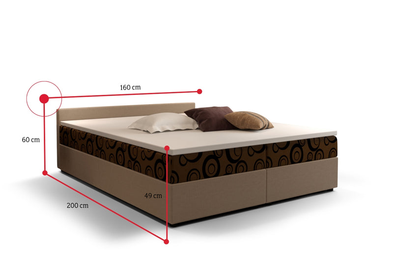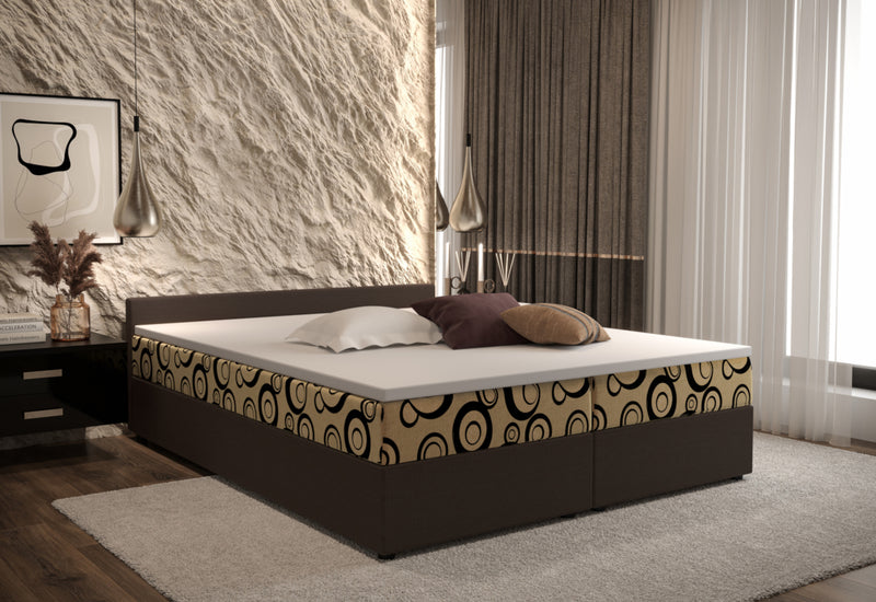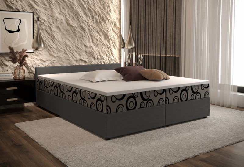 Posteľ CIROLA. Moderná čalúnená posteľ, ktorá má už zabudovaný matrac v posteli a je po oboch stranách. Jej výška je 10cm a výplňou je pružina typu Bonell. Priestranné úložné boxy s bočným otváraním nájdete pod matracmi. Možnosť voľby veľkosti spacej plochy a farby čalúnenia.