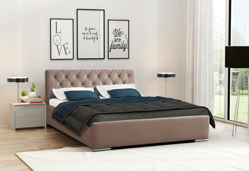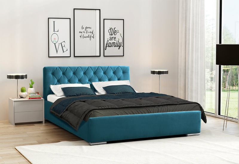 Čalúnená posteľ DAVIDE. Moderná posteľ s jednoduchými a rovnými líniami. Konštrukcia postele je vyrobená z kvalitného materiálu. Dominantným prvkom je vysoké čelo postele s výrazným prešitím a ozdobnými gombíkmi. Súčasťou postele je lamelový rošt a úložný priestor. Nižšie nožičky poskytujú stabilitu a pevnosť. Na výber máte z viacerých farieb čalúnenie a rozmeru spacej plochy. Pre komfortný spánok si môžete vybrať vhodný matrac z našej ponuky.