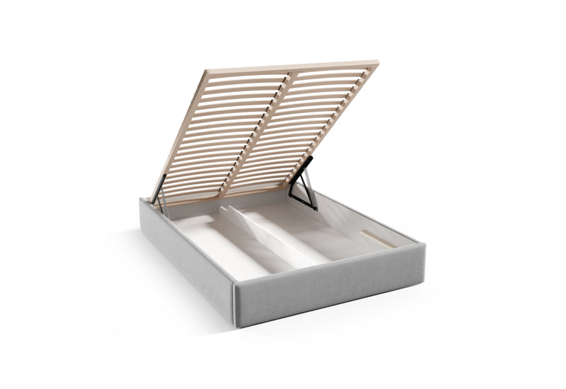 Čalúnená posteľ ELISA. Čalúnená posteľ zaujme jednoduchými líniami moderného štýlu. Pevnosť a stabilitu postele zaručí dobre spracovaný rám z kvalitných materiálov, ktorý stojí na nízkych nožičkách v striebornej farbe. Vysoké polstrované čelo s prešívaním využijete aj na odpočinok počas dňa. Čalúnená posteľ disponuje veľkým množstvom úložného priestoru. Vybrať si môžete z viacerých čalúnení a z rozmerov spacej plochy.