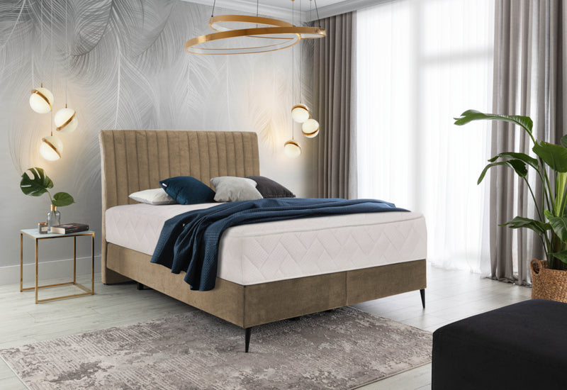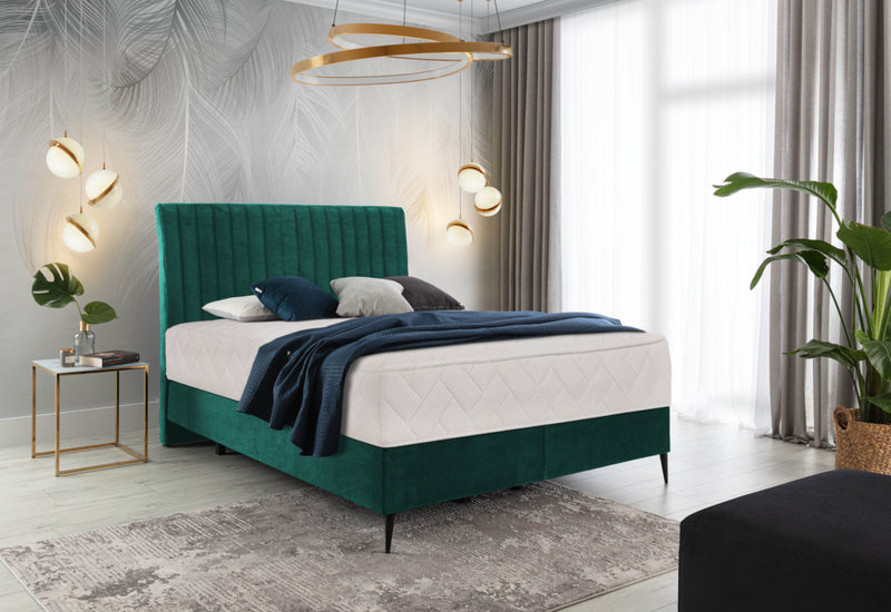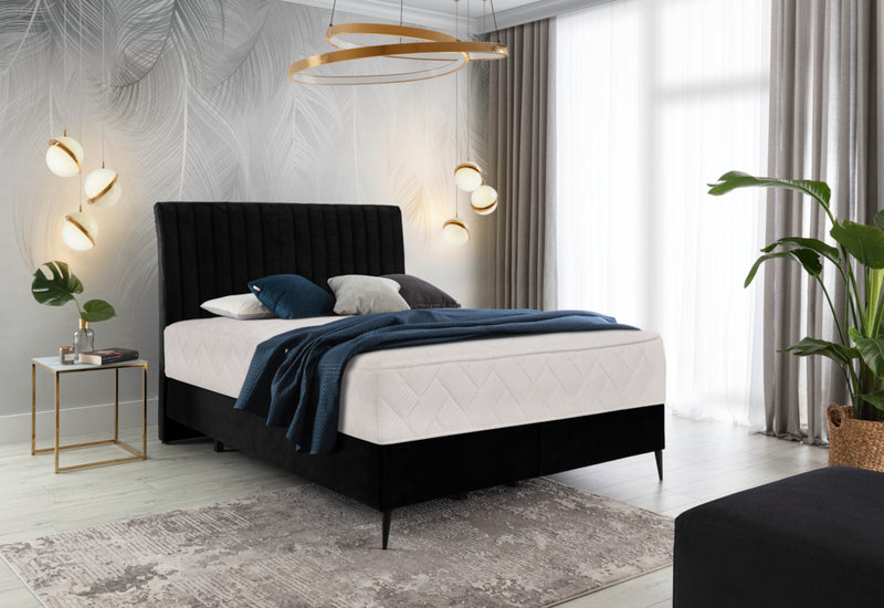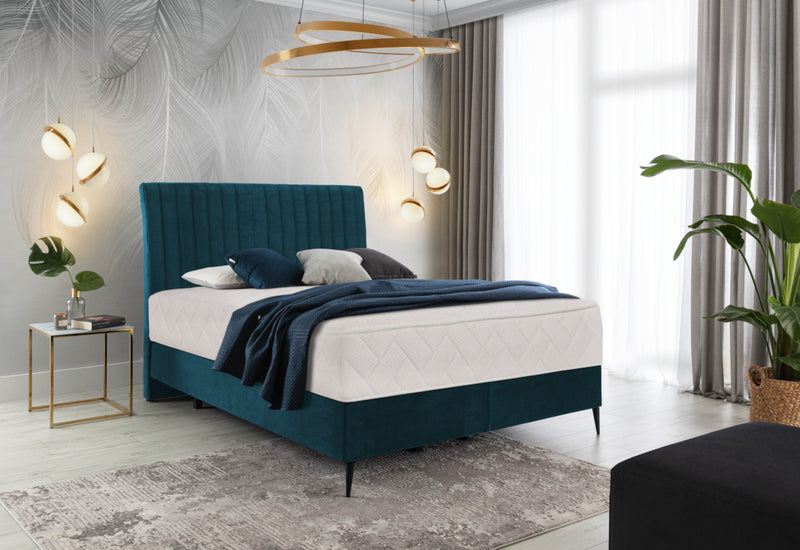 Čalúnená posteľ FANKA. Zaujme jednoduchými líniami. Dominantným prvkom je veľké čelo postele. Súčasťou postele je rošt a taštičkový matrac vyplnený visco penou T25 s tuhosťou H3. Vyvýšená spacia plocha vám umožní príjemné vstávanie. Čierne kovové nohy zaistia pevnosť a stabilitu. Môžete vybrať z viacerých čalúnení a veľkosti spacej plochy.