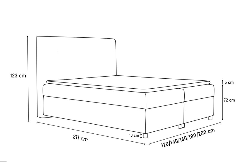 Čalúnená posteľ GUN. Posteľ s jednoduchými líniami a prešitím dodajú štýl. Drevená konštrukcia a vysoké čelo zaistí stabilitu a pevnosť postele. Vyvýšená spacie plocha zaručí ľahké vstávanie. Komfortné spanie diky taštičkovým pružinám a pamäťovej pene. Topper zdrama. Posteľ ponúka úložný priestor pod matracmi s mechanickým otváraním. Elegantné chrómované nožičky. Vyberať môžete z viacerých farieb a rozmerov spacie plochy.