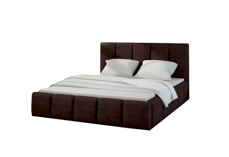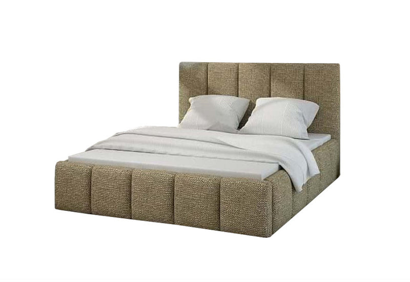 Čalúnená posteľ HEDVIKA. Posteľ s jednoduchými líniami a prešitím dodajú štýl. Drevená konštrukcia a vysoké čelo zaistí stabilitu a pevnosť postele. Komfortné spanie môžete ľubovoľne zvoliť podľa druhu matrace, ponúkame matrac DONA so zabudovaným roštom. Voľba poťahových materiálov a veľkosť spacej plochy.