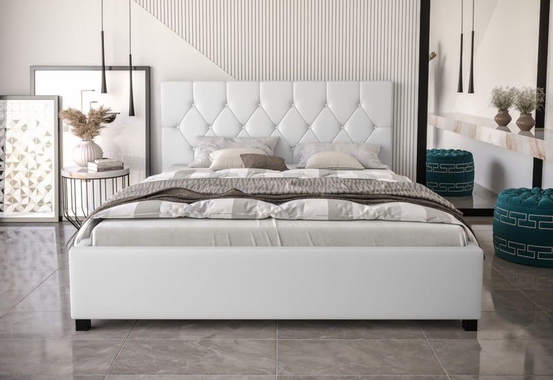 Čalúnená posteľ HILARY. Čalúnená posteľ zaujme svojim moderným štýlom a spracovaním. Dominantným prvkom je vysoké prešívané čelo, ktoré môžete využiť na relax počas dňa. Je potiahnutá kvalitnou ekokožou, vďaka ktorej je jednoduchá na údržbu. Odporúčame vám dokúpiť k posteli aj zvyšok vybavenia. Penový matrac DE LUX strednej tvrdosti H3 s výškou 14 cm vyniká tým, že sa dokonale prispôsobuje váhe vášho tela. Môžete si vybrať z viacerých čalúnení a rozmerov spacej plochy.