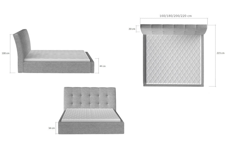 Čalúnená posteľ INGRID. Disponuje okrem iného úložným priestorom. Nad ním nájdete rošt v kovovom ráme s plynovou vzperou. Vyberať si môžete zo štyroch rozmerov spacej plochy a viacerých farieb.