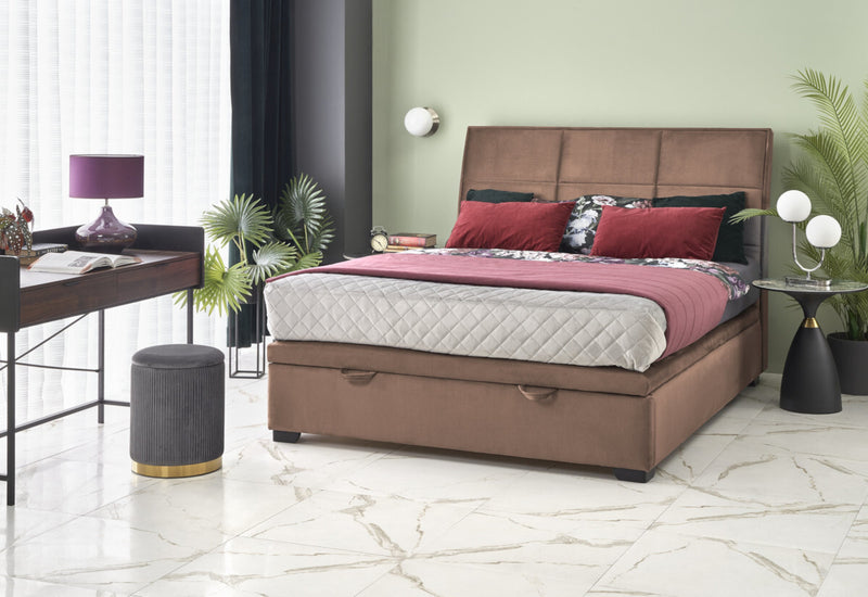 Čalúnená posteľ LOBOS 2. Moderná čalúnená posteľ Vás zaujme svojim elegantným vzhľadom a jednoduchými líniami. Konštrukcia je vyrobená z kvalitného materiálu. Potiahnutá je s príjemnou látkou na dotyk. Dominantným prvkom je vysoké čelo postele s ozdobným prešívaním. Súčasťou postele je lamelový rošt a úložný priestor, ktorý je umiestnený pod spacou plochou. Nižšie nožičky dodávajú väčšiu stabilitu. Možnosť výberu z viacerých čalúnení.