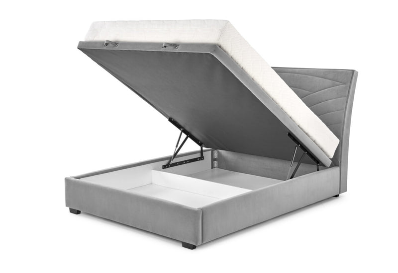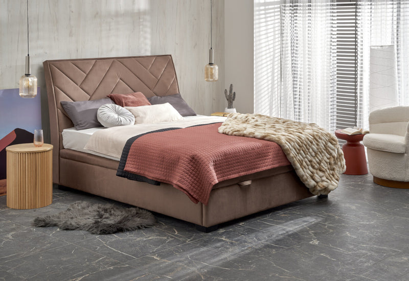 Čalúnená posteľ LIBOS. Moderná čalúnená posteľ Vás zaujme svojim elegantným vzhľadom a jednoduchými líniami. Konštrukcia je vyrobená z kvalitného materiálu. Potiahnutá je príjemnou látkou na dotyk. Dominantným prvkom je vysoké čelo postele s ozdobným prešívaním. Súčasťou postele je lamelový rošt a úložný priestor, ktorý je umiestnený pod spacou plochou. Nižšie nožičky dodávajú väčšiu stabilitu. Možnosť výberu z viacerých čalúnení.