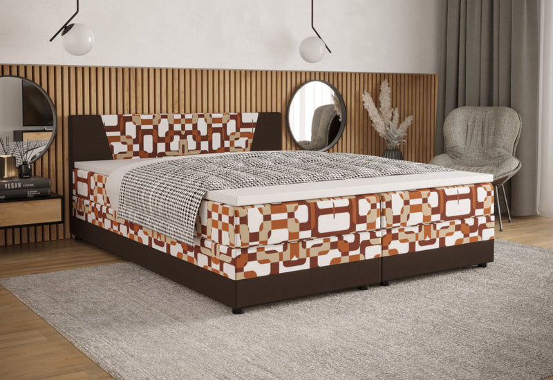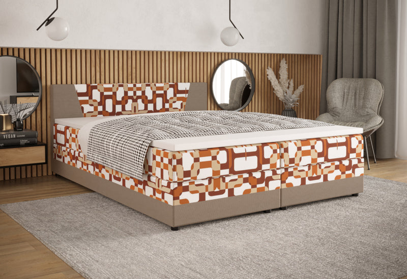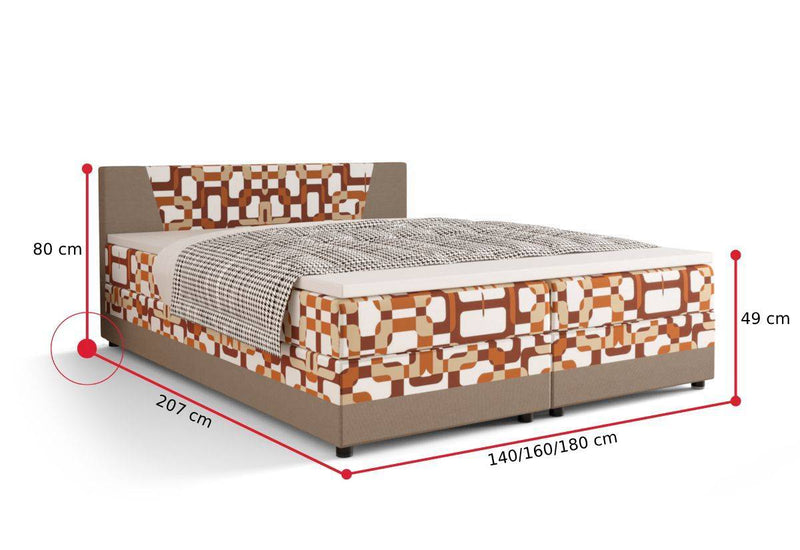 Čalúnená posteľ MOLENA. Jednoduchý dizajn, ale zároveň neobvyklé vzory postele vás ihneď zaujmú. Súčasťou postele je rošt a zabudovaný bonellový matrac vyplnený penou T25. Vysoko flexibilný penový topper zaistí pohodlie a komfort pri odpočinku. Úložný priestor s bočným otváraním nájdete pod matracmi. Možnosť voľby rozmeru spacej plochy a farby čalúnenia.