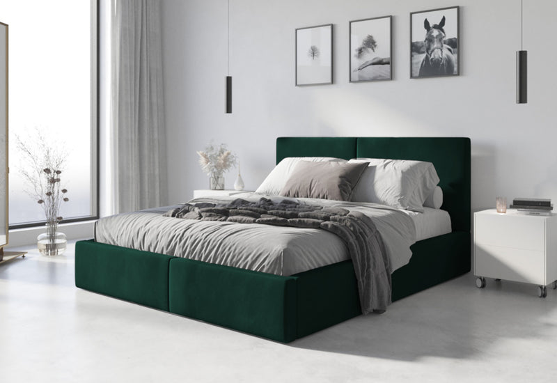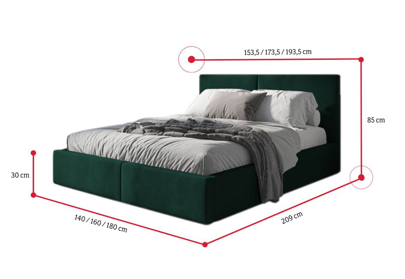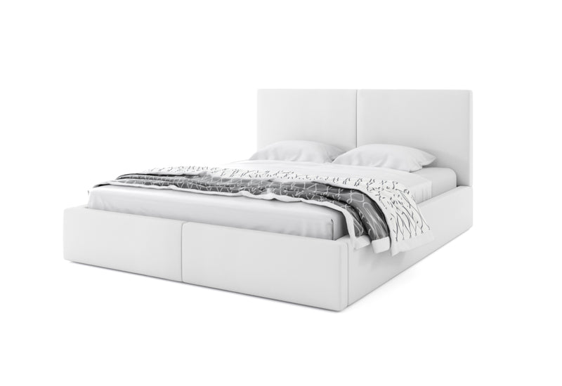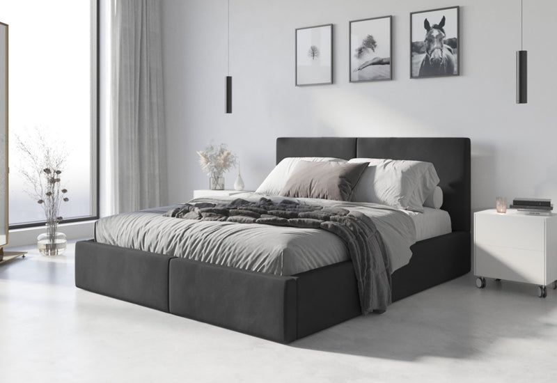 Čalúnená posteľ NICKY 2. Zaujme jednoduchými líniami moderného štýlu. Konštrukcia postele je vyrobená z kvalitného materiálu, ktorý zaistí pevnosť a stabilitu postele. Súčasťou postele je rošt, ktorý je pripevnený na kovovom ráme. Pod roštom sa nachádza veľké množstvo úložného priestoru, ktorý je rozdelený prepážkou a v prednej časti sa nachádza kontajner na posteľnú bielizeň. Možnosť voľby čalúnenia.