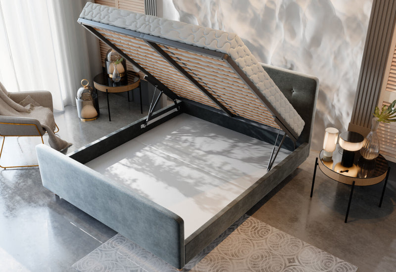 Čalúnená posteľ OSCAR. Základ tvorí dobre spracovaný rám. Vďaka tomu je zaistená pevnosť a stabilita postele. Dominantným prvkom je vysoké čelo s ozdobným prešívaním. Súčasťou postele je rošt. Priestranné úložné boxy s predným otváraním nájdete pod roštom. Možnosť voľby veľkosti spacej plochy a čalúnenia.