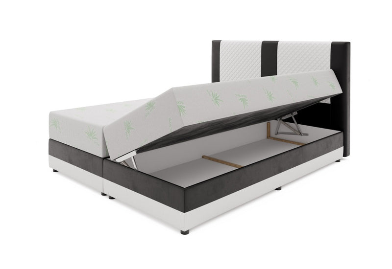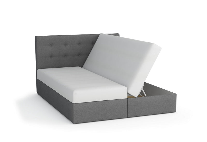 Čalúnená posteľ PIERROT. Pevnosť a stabilitu postele zaručuje kvalitne vyrobený rám. Vysoké polstrované čelo využijete počas dňa aj pri relaxácii. Kvalitu vášho spánku zaistí matrac z bonelových pružín, ktorý dodá oporu vášmu telu. Pod matracom nájdete úložný priestor. Plastové nožičky sú moderným prvkom tejto postele. Vybrať si môžete z poťahových materiálov a rozmerov spacej plochy. Pre ešte väčšie pohodlie si kúpte penový topper v konfigurácii ako doplnok.