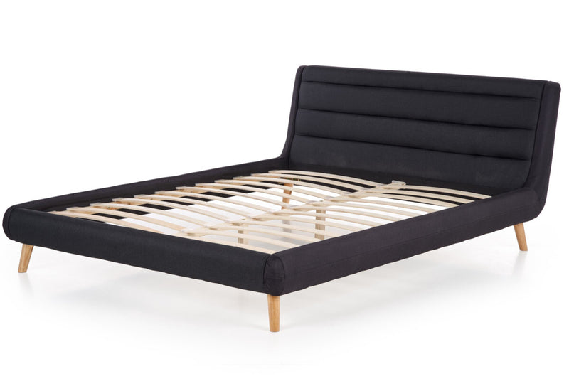 Čalúnená posteľ RUBIKON. Zaujme vás svojimi čistými a jednoduchými líniami. Vysoké čelo postele je potiahnuté príjemnou látkou a zdobené prešitím. Súčasťou postele je lamelový rošt. Vyššie nožičky v prírodnom dekore dodávajú väčšiu stabilibu a vzdušnosť. Pre komfort postele si môžete zaobstarať vhodný matrac, napr. DE LUX alebo MORAVIA z našej ponuky.