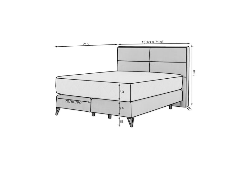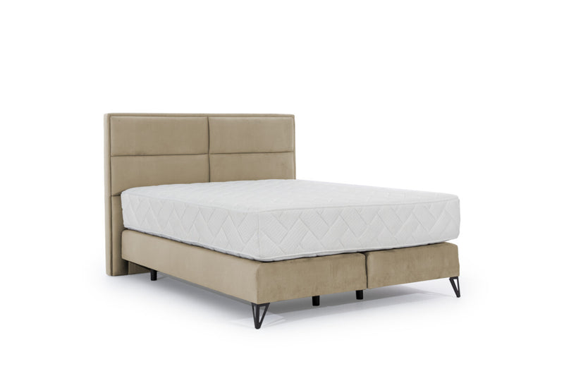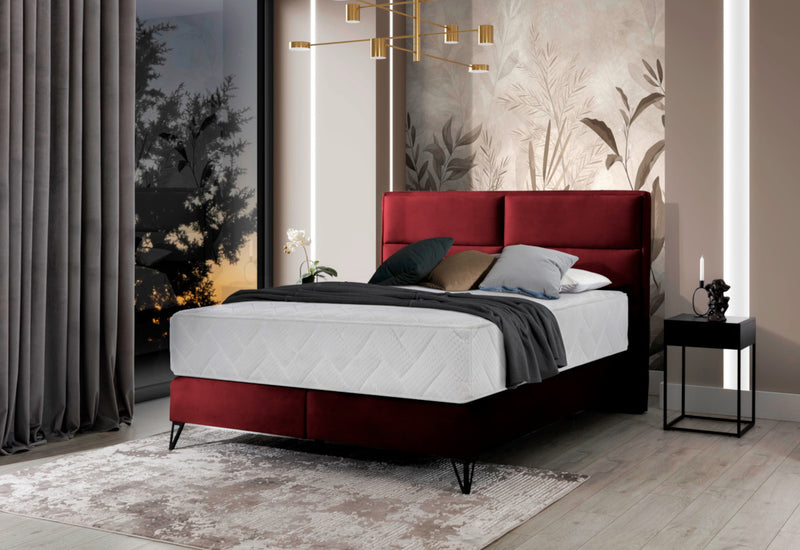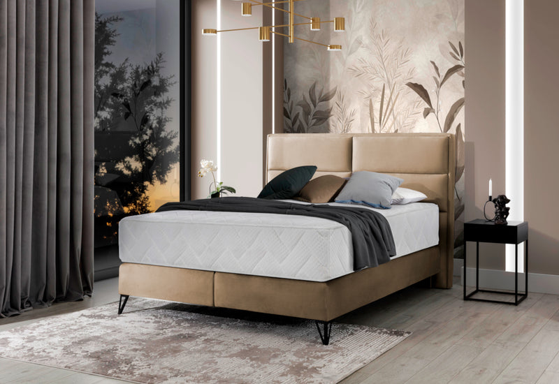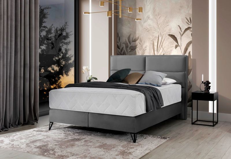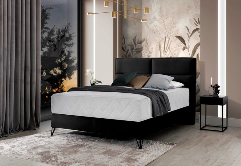 Čalúnená posteľ SAFIRA. Zaujme jednoduchými líniami. Dominantným prvkom je veľké čelo postele. Súčasťou postele je rošt a taštičkový matrac vyplnený visco penou T25 s tuhosťou H3. Vyvýšená spacia plocha vám umožní príjemné vstávanie. Čierne kovové nohy zaistia pevnosť a stabilitu. Môžete vybrať z viacerých čalúnení a veľkosti spacej plochy.