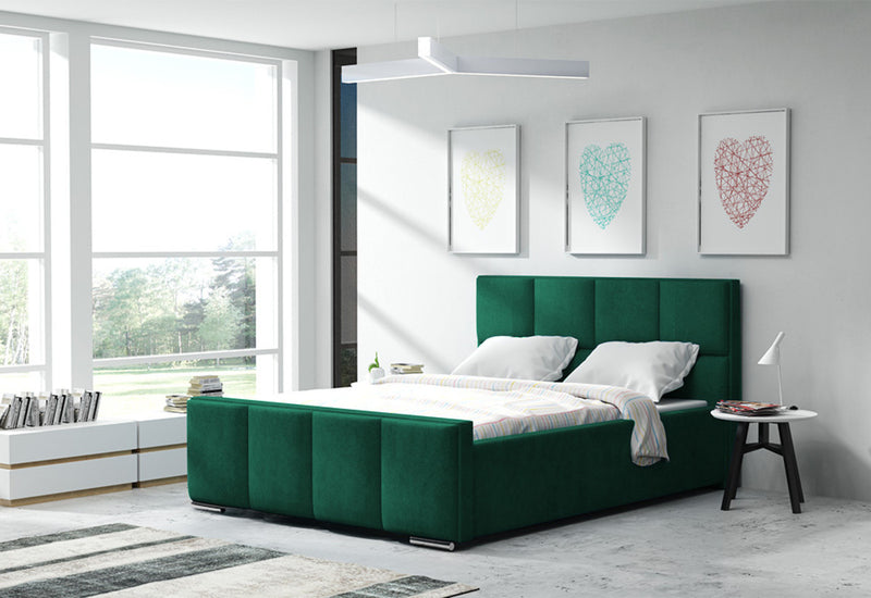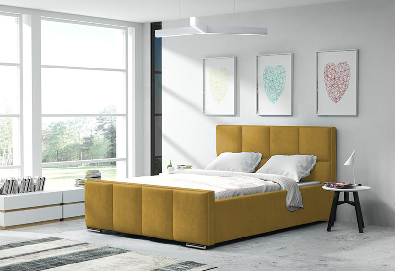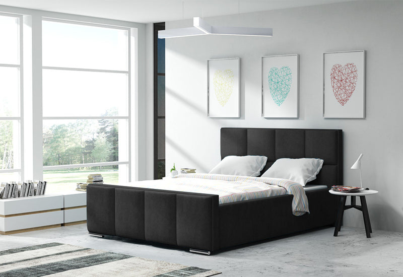 Čalúnená posteľ SARA. Čalúnená posteľ zaujme jednoduchými líniami moderného štýlu. Pevnosť a stabilitu postele zaručí dobre spracovaný rám z kvalitných materiálov, ktorý stojí na nízkych nožičkách v striebornej farbe. Vysoké polstrované čelo s prešívaním využijete aj na odpočinok počas dňa. Čalúnená posteľ disponuje veľkým množstvom úložného priestoru. Vybrať si môžete z viacerých čalúnení a z rozmerov spacej plochy.