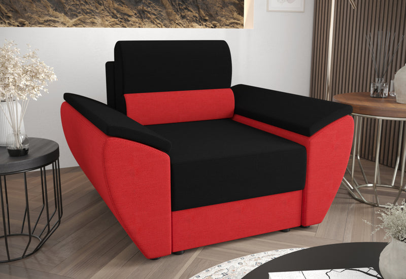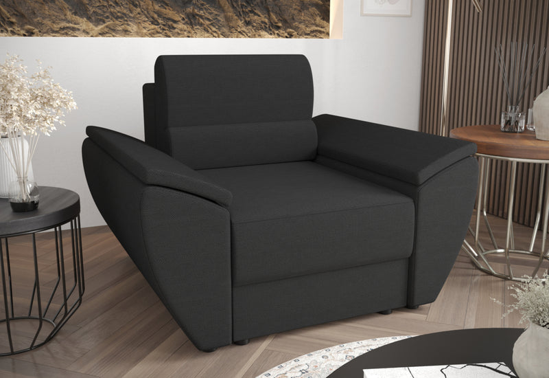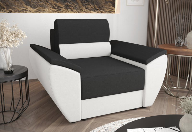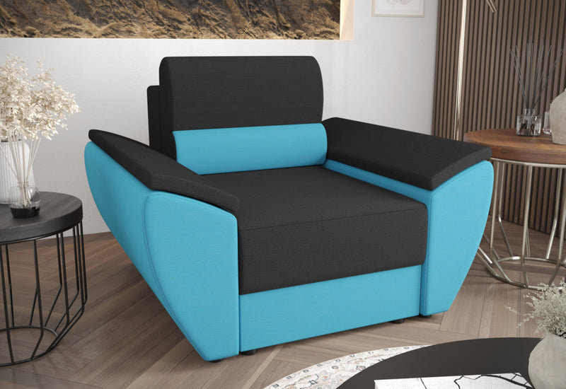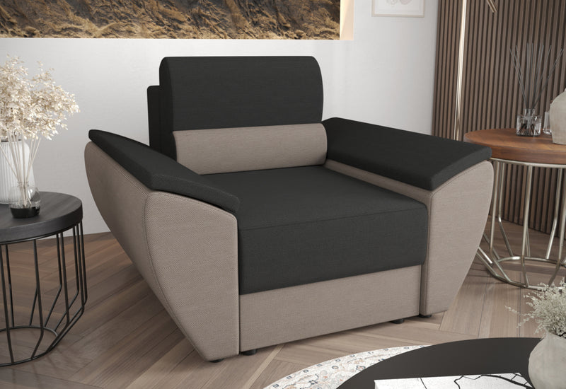 Čalúnené kreslo MIA. Kreslo vás na prvý pohľad zaujme svojim jednoduchým dizajnom. Je vyrobené z kvalitných materiálov s možnosťou rozloženia. Komfortné sedenie zaistí pohodlný sedák vyplnený PUR penou T-30 a príjemná látka. Celú konštrukciu podopierajú nízke nožičky. Možnosť výberu z viacerých čalúnení. Možno kombinovať s ďalšími produktmi z radu MIA.
