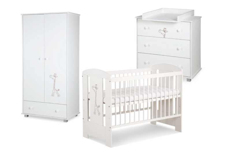 Detská izba DORA. Moderná detská izba vyrobená z kvalitných materiálov. Detská izbička sa skladá z troch produktov detskej komody, skrine a postieľky. Možnosť výberu z dvoch dekorov. Produkty sa dajú zakúpiť aj samostatne, vďaka tomu si môžete vytvoriť detskú izbičku podľa Vášho priania.