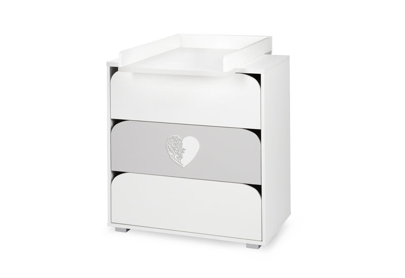 Detská komoda SERICA. Moderná detská komoda s prebaľovacím pultom a krásnym motívom. Detská komoda je vyrobená z kvalitnej drevotrieskovej dosky. Zaujme vás nadčasový dizajn a starostlivo spracované detaily. Krásna detská komoda s tromi priestrannými šuplíkmi. Možnosť zakúpenia ďalších produktov z radu SERICA.