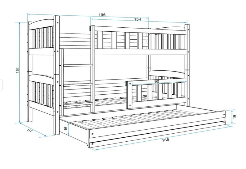 Detská poschodová posteľ FLORENT 3. Tvorí masívný rám z borovicového dreva. Montážný materiál je súčasťou balenia. Povrch je lakovaný ekologicky nezávadným lakom na vodnej báze. Všetky hrany sú zaoblené, čím je zaistená absolútná bezpečnosť používania. Dodávame vrátane matraca a roštu.