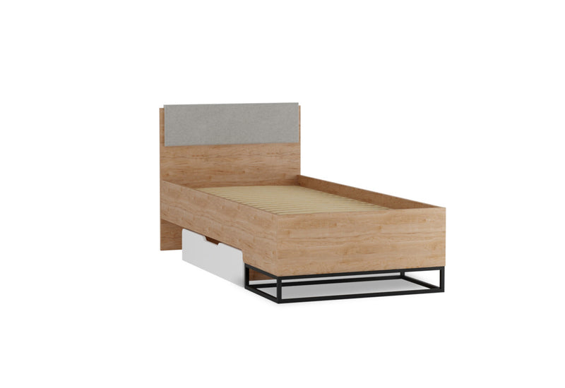 Detská posteľ ANDRO. Je vyrobená z kvalitného materiálu. Veľký šuplík umiestnený pod posteľou poskytuje dostatok úložného priestoru. Vďaka ABS hrane je chránená pred mechanickým poškodením a vlhkosťou. Predná časť stojí na kovovej konštrukcii. Latkový rošt je súčasťou postele. Možnosť voľby kombinácie s penovým matracom. Ide o pružnú penu strednej tuhosti. Konštrukcia matraca je dôkladnou oporou pre bedrové svalstvo a umožňuje tak komfortný spánok. Povrch matraca je chránený antialergénnym poťahom, ktorý je prateľný. Je možné kombinovať s ďalšími produktmi z radu ANDRO.
