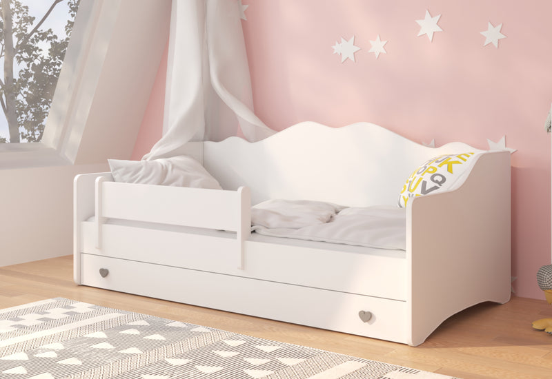 Detská posteľ MEKA. Moderná posteľ do detskej izby. Konštrukcia postele je vyrobená z kvalitného lamina, ktoré zaistí stabilitu a pevnosť. Súčasťou je zábrana, penový matrac a lamelový rošt. V spodnej časti postele nájdete úložný priestor v podobe zásuvky, ktorá je na kolieskach a je vybavená úchytmi pre ľahšiu manipuláciu. Možnosť výberu z viacerých dekorov.