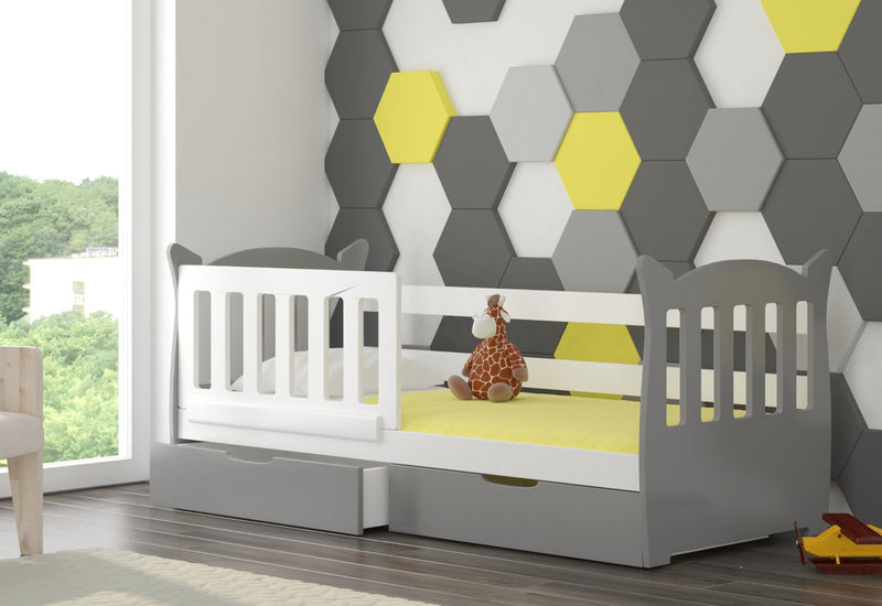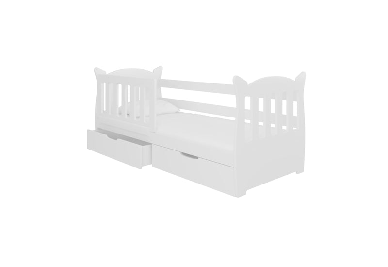 Detská posteľ PENA. Detská posteľ zaujme svojou jednoduchosťou doplnenou pastelovými farbami. Je vyrobená z kvalitného lamina s ABS hranou, ktorá chráni pred mechanickým poškodením. Komfort zaručí matrac z kvalitnej PUR peny s roštom, ktoré sú súčasťou postele. V spodnej časti nájdete úložný priestor v podobe dvoch šuplíkov. Pre pohodlné otváranie majú šuplíky výrez. Možnosť výberu z viacerých farieb.