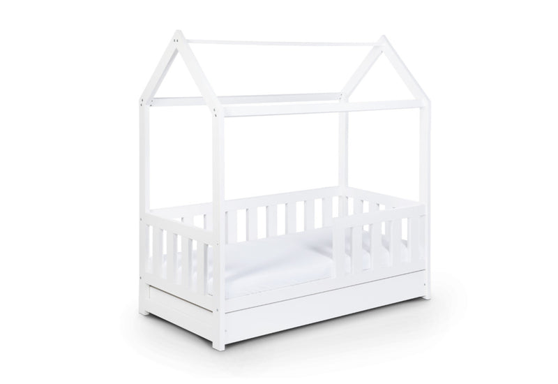 Detská posteľ VILA. Moderná detská posteľ s prístelkou so zaujímavým dizajnom vyrobená z kvalitnej drevotrieskovej dosky. Detskú posteľ v tvare domčeka, si zaručene obľúbia hlavne tie najmenšie deti. Matrac nie je súčasťou detskej postele.