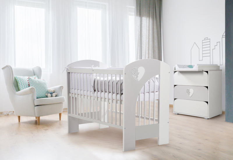 Detská postieľka SERICA. Moderná detská postieľka je vyrobená z kvalitnej drevotrieskovej dosky a MDF dosky pre stabilitu a pevnosť s vysokou zábranou proti pádu. V postieľke si dieťa pospí naozaj dlho. Postarajú sa o to odolné materiály, nadčasový design a starostlivo spracované detaily. Detská postieľka má veľmi zaujímavý dizajn, ktorý si zaručene obľúbite. Možnosť zakúpenia ďalších produktov z radu SERICA.