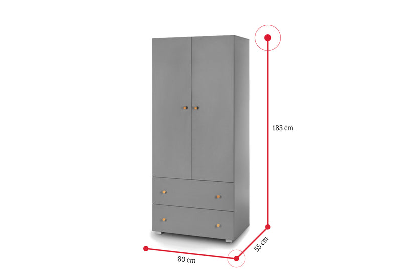 Detská šatníková skriňa NORBET. Modená detská skriňa vyrobená z kvalitného materiálu. Zaujme vás jednoduchými líniami. Detská skriňa s dostatkom úložného priestoru v podobe políc, šatníkovej tyče a dvoch šuplíkov sa skvele bude hodiť do detskej izby. Možnosť zakúpenia ďalších produktov z radu NORBET.