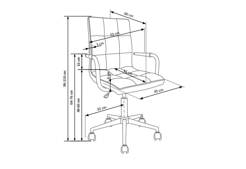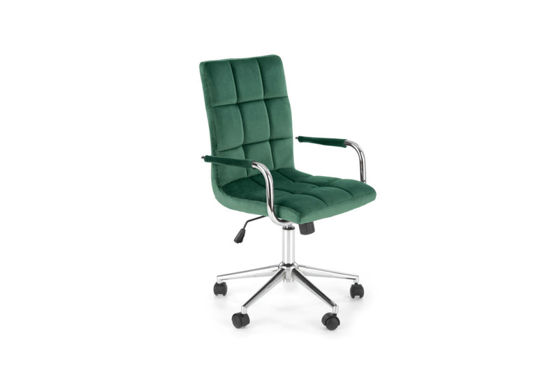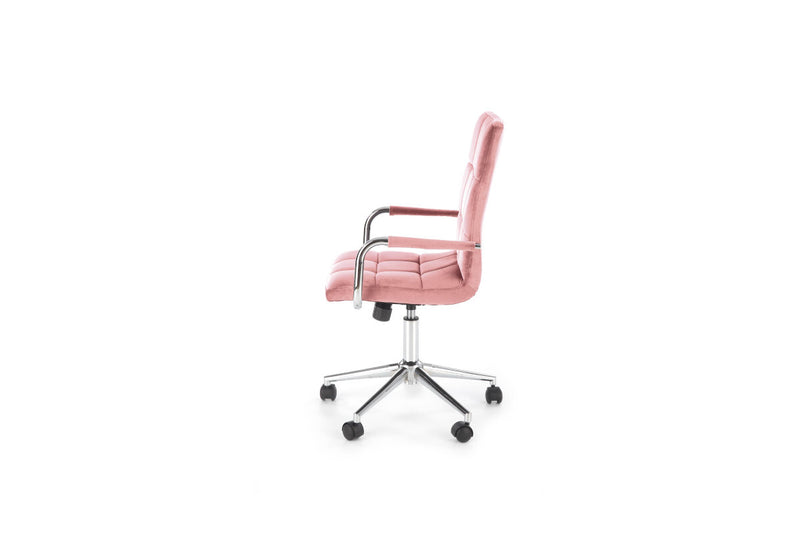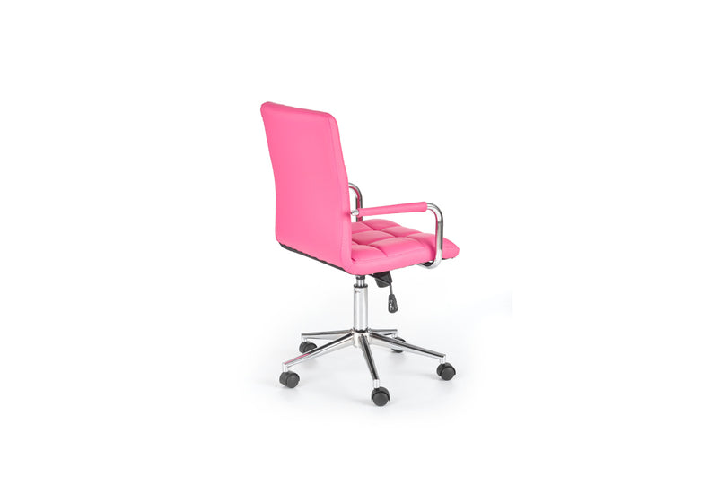 Detská stolička ADONIRA. Kvalitné čalúnenie sedáku i operadla ponúka komfort pri sedení. Tvarovaná opierka zaistí prirodzené držanie tela. Stojí na pevnej kovovej konštrukcii s piatimi plastovými kolieskami. Vďaka ovládaciemu mechanizmu TILT je možné ľahko upraviť výšku sedacej plochy a polohu operadla podľa potreby. Súčasťou sú pohodlné podrúčky. Stoličku zdobí dizajnové prešívanie v modernom štýle. Možnosť výberu poťahovej látky a farby.